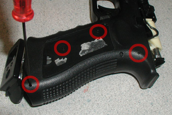 チャンバー&バレルAssyを外すにはこのピンを抜きます。