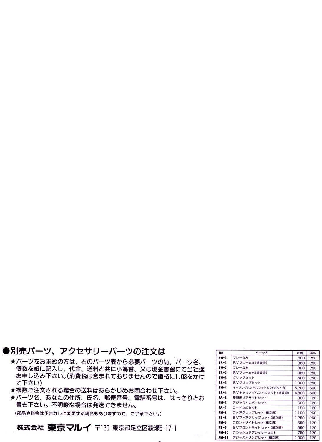 〜東京マルイに部品注文するぞ〜